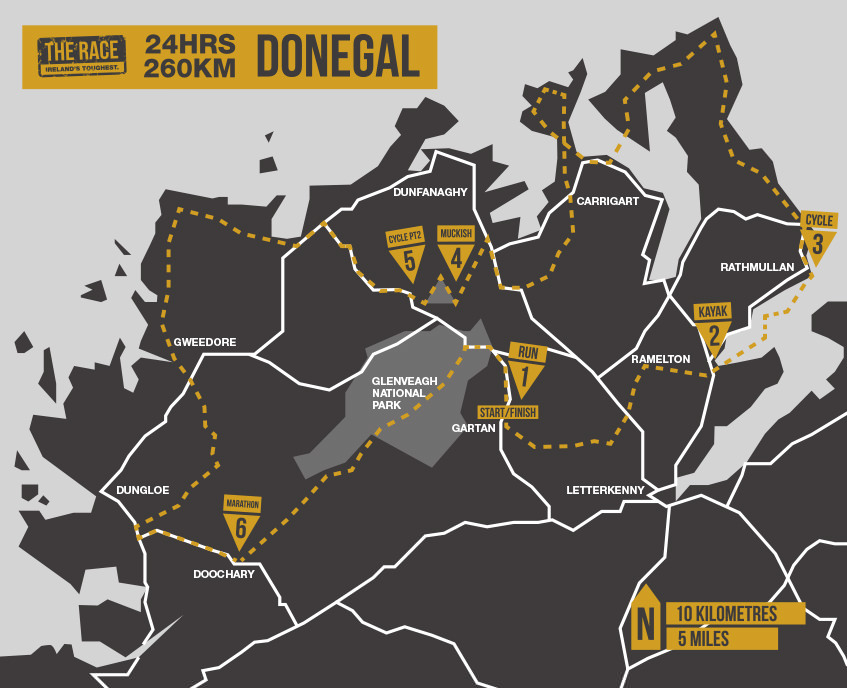 The race is a multisport run (22K) – kaiak (15K) – cycle (100K) – run (5K) – cycle (75K) – run (43K) event taking place leading the athletes through the most norther part of Ireland. The race director is David Burnes, a young guy who did a 16’000 km treck from Istanbul to Shanghai by cycling, running and rafting. „Those who compete in and complete The Race will be those who refuse to give up“ he was saying on the website and his statement at the race briefing was clear: „we’ve tried to make it really tough for you“.